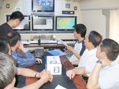 該移動氣象臺具有現場氣象探測、衛星通信、電視會商、預報服務等系統功能,車載系統設計技術先進,能夠迅速進入現場,采用移動氣象探測設備,實現對現場低空大氣多種氣象要素和天氣現象進行自動探測,能夠實時接收國家氣象信息中心廣播的大范圍氣象資料和上級指導預報產品,實現與中央氣象臺、省或當地市氣象臺進行天氣會商和召開視頻會議,現場分析天氣形勢演變,制作預報產品,完成氣象資料的收集、加工處理和預報制作等氣象保障服務工作,實現在第一時間內為防災救災指揮部門提供準確的現場氣象信息和決策依據。該移動氣象臺的投入使用將為抗震救災和汛期氣象服務做好應急準備。