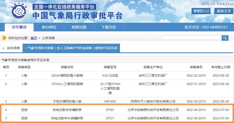 電式數字長波輻射表已通過中國氣象局的考核并獲得氣象專用技術裝備使用許可證。